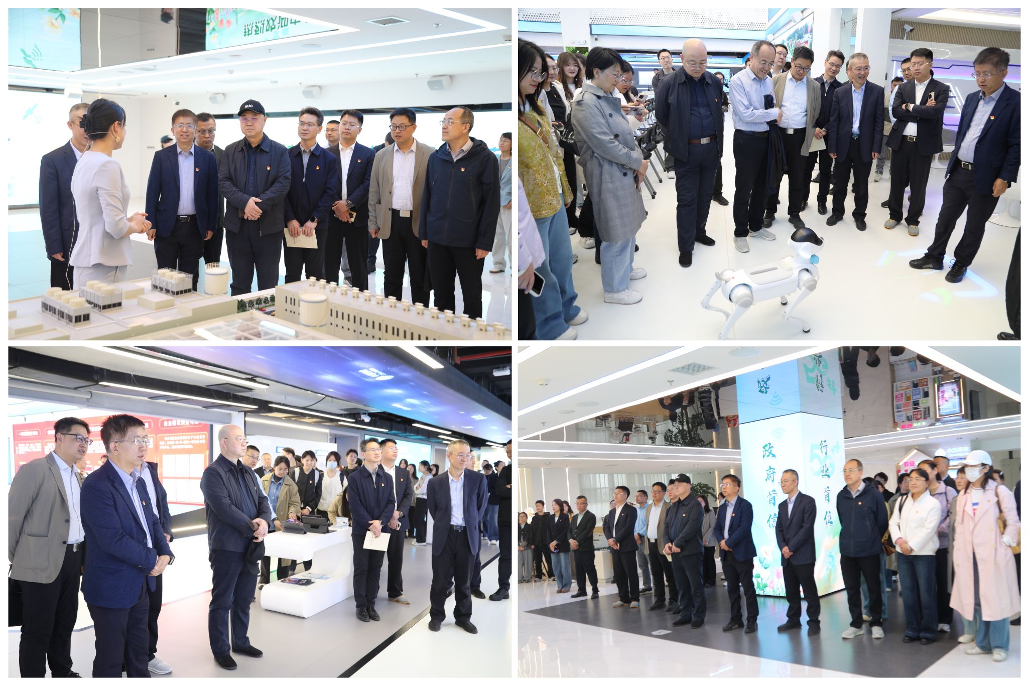 师生党员依次参观数字会客厅各大功能展区,近距离了解5G通信、人工智能、大数据、云计算、智慧算力、数字政务等前沿数字技术的创新成果与落地应用案例。通过实景观摩、视频讲解、互动体验等形式,大家直观感受数字经济发展浪潮、信息技术产业升级趋势以及国企数字化转型实践成果。